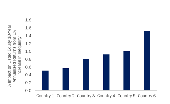 Exhibit 5: Impact of 1% Increase in Inequality on Listed Equity Returns in Selected DM and EM Countries